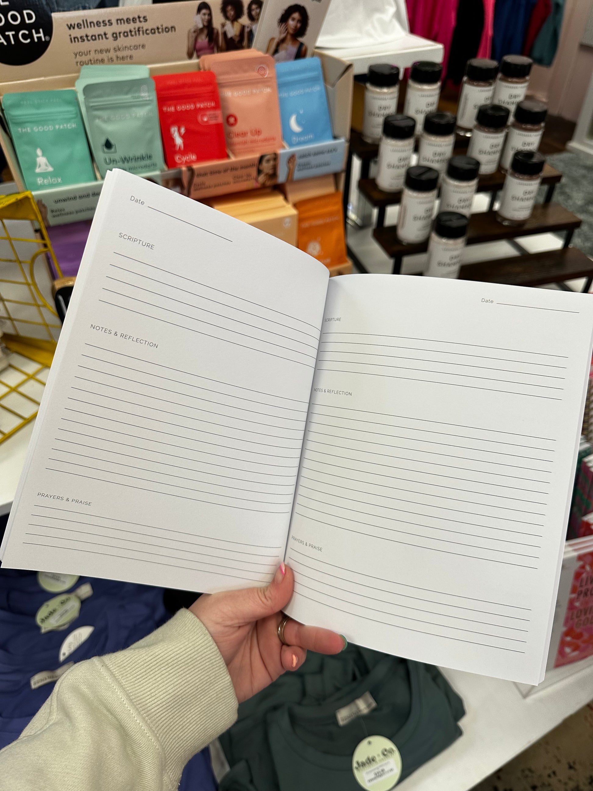Experience the power of mindful study and prayerful reflection with our Bible Study Journals. Designed for a deeper connection, these journals offer dedicated spaces to record scripture, capture notes and reflections, and express your heartfelt prayers. Perfect for guiding your spiritual journey, our Bible Study Journals are an essential companion for anyone seeking to grow in faith and understanding.DetailsDimensions: 7" x 9"Gold foil accents Flexible cover 100 pages Featuring guided prompts and space for scripture, notes, reflections, as well as heartfelt prayers and praises