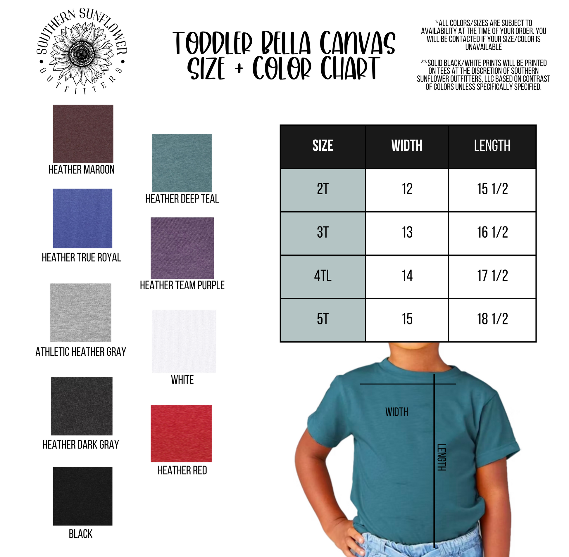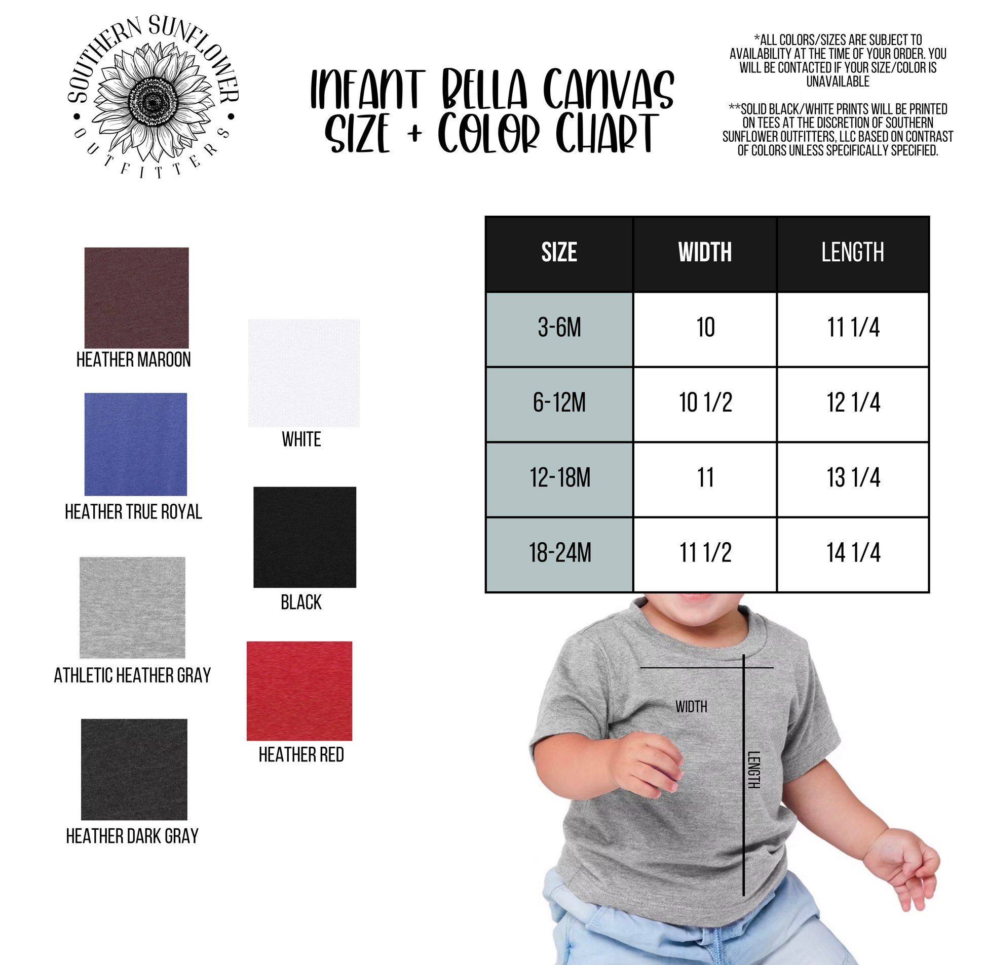 Here at Southern Sunflower Outfitters, all of our custom-made shirts are printed DTG (direct to garment) with love by a family owned business right here in the U.S.A.!