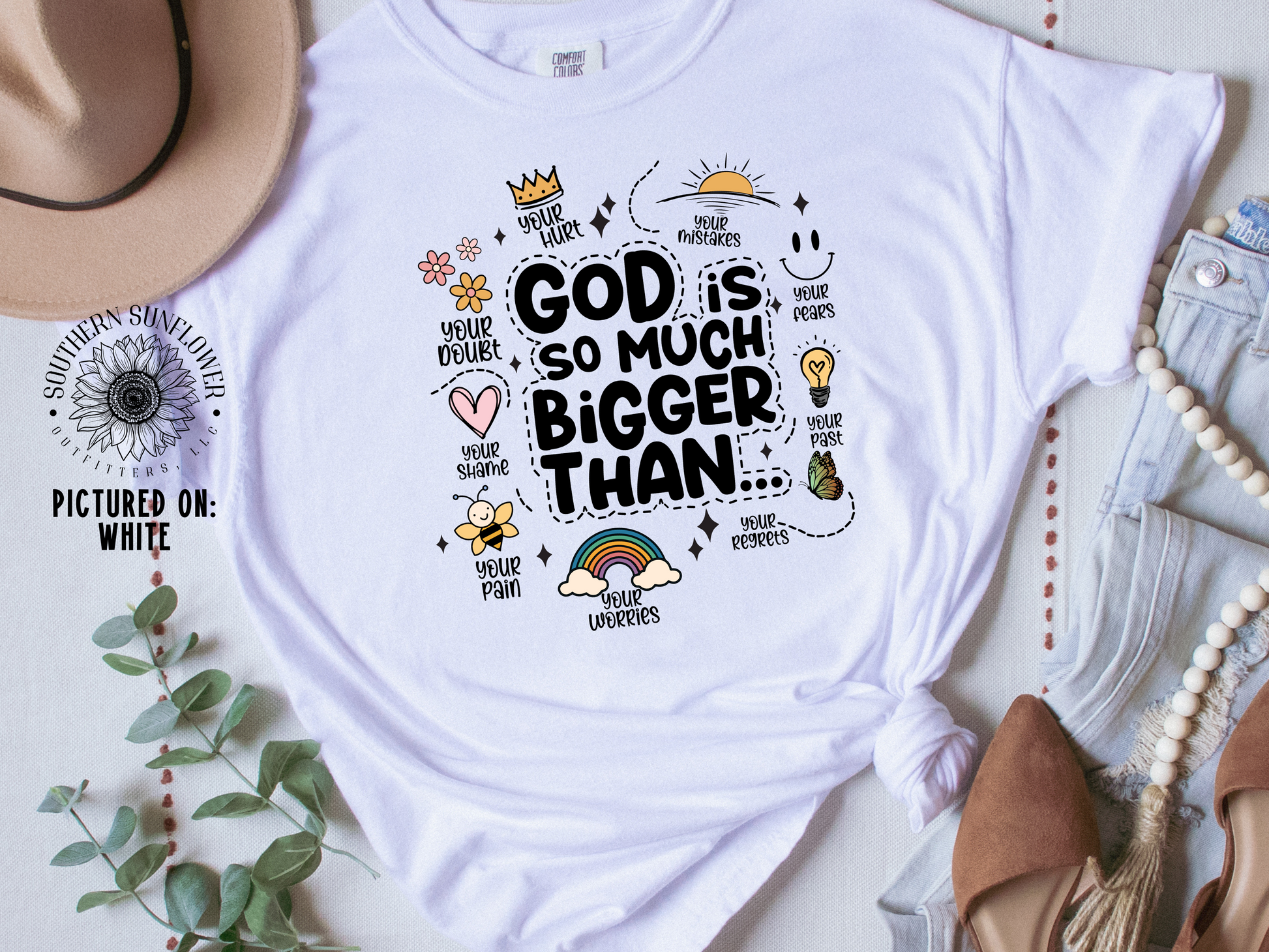 Here at Southern Sunflower Outfitters, all of our custom-made shirts are printed DTG (direct to garment) with love by a family owned business right here in the U.S.A.!