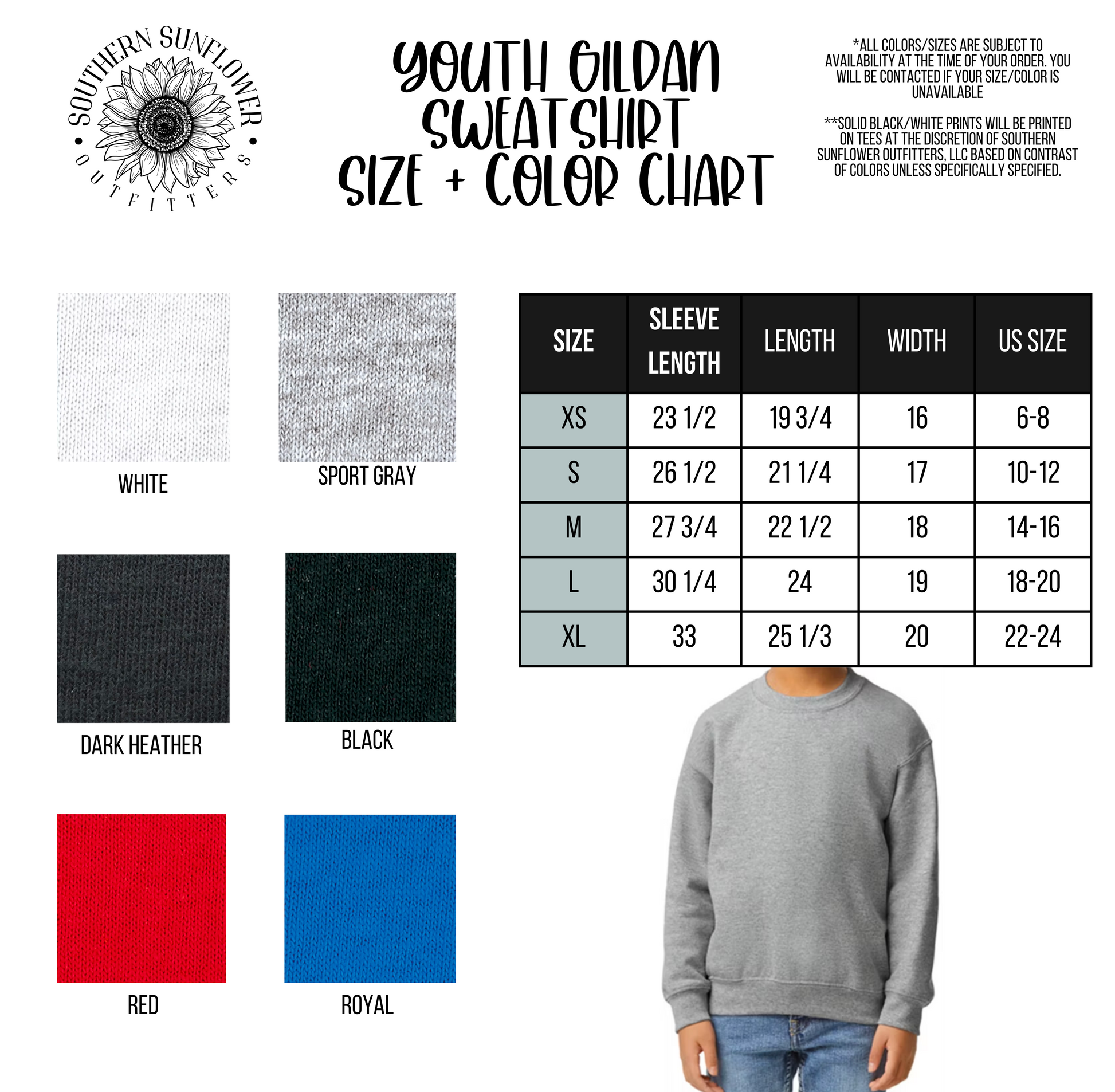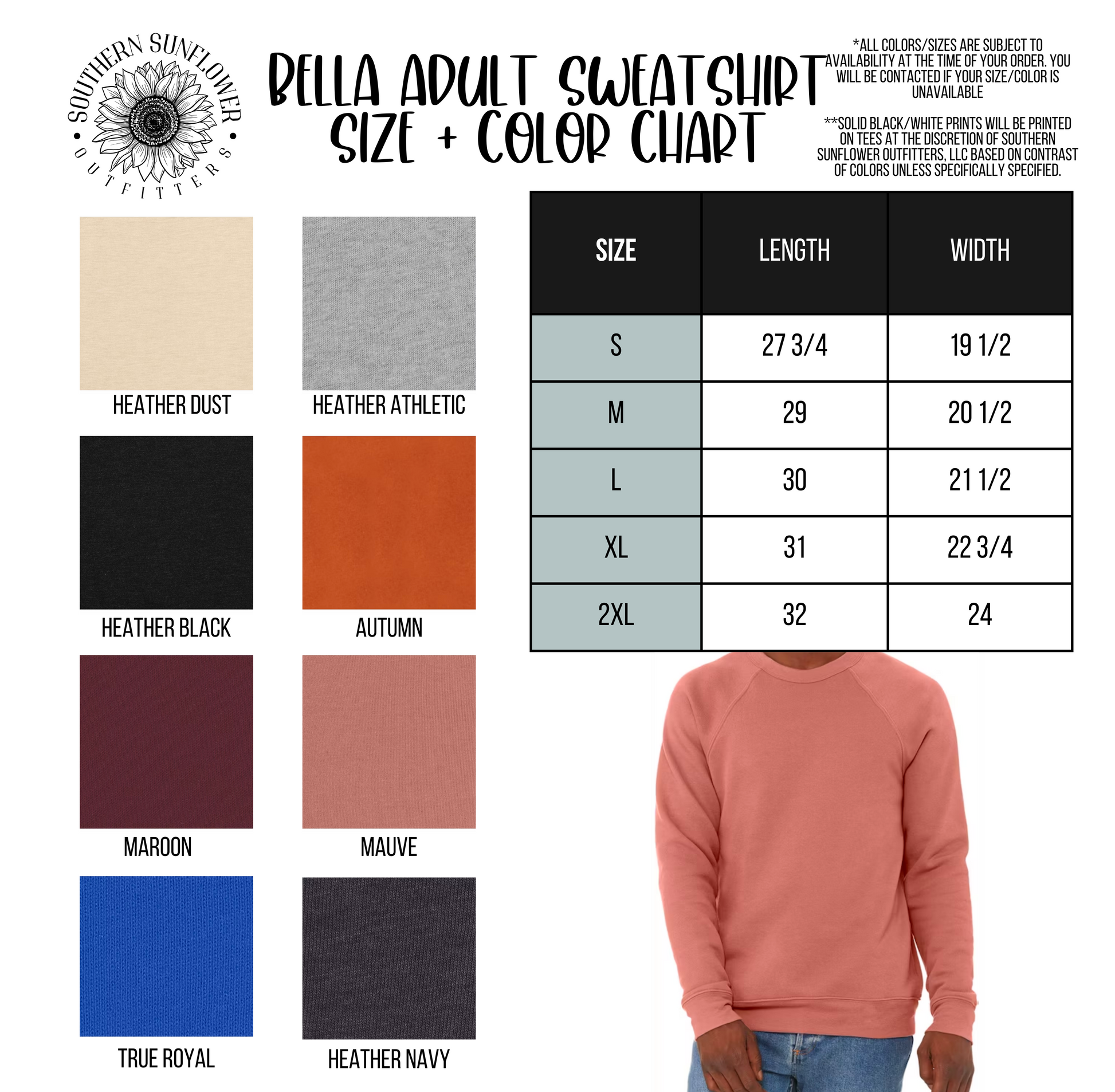 *****PLEASE REVIEW COLOR AND SIZE CHART FOR EACH STYLE, SOUTHERN SUNFLOWER OUTFITTERS WILL NOT MAKE AN EXCHANGE BASED ON SIZE ISSUES*****