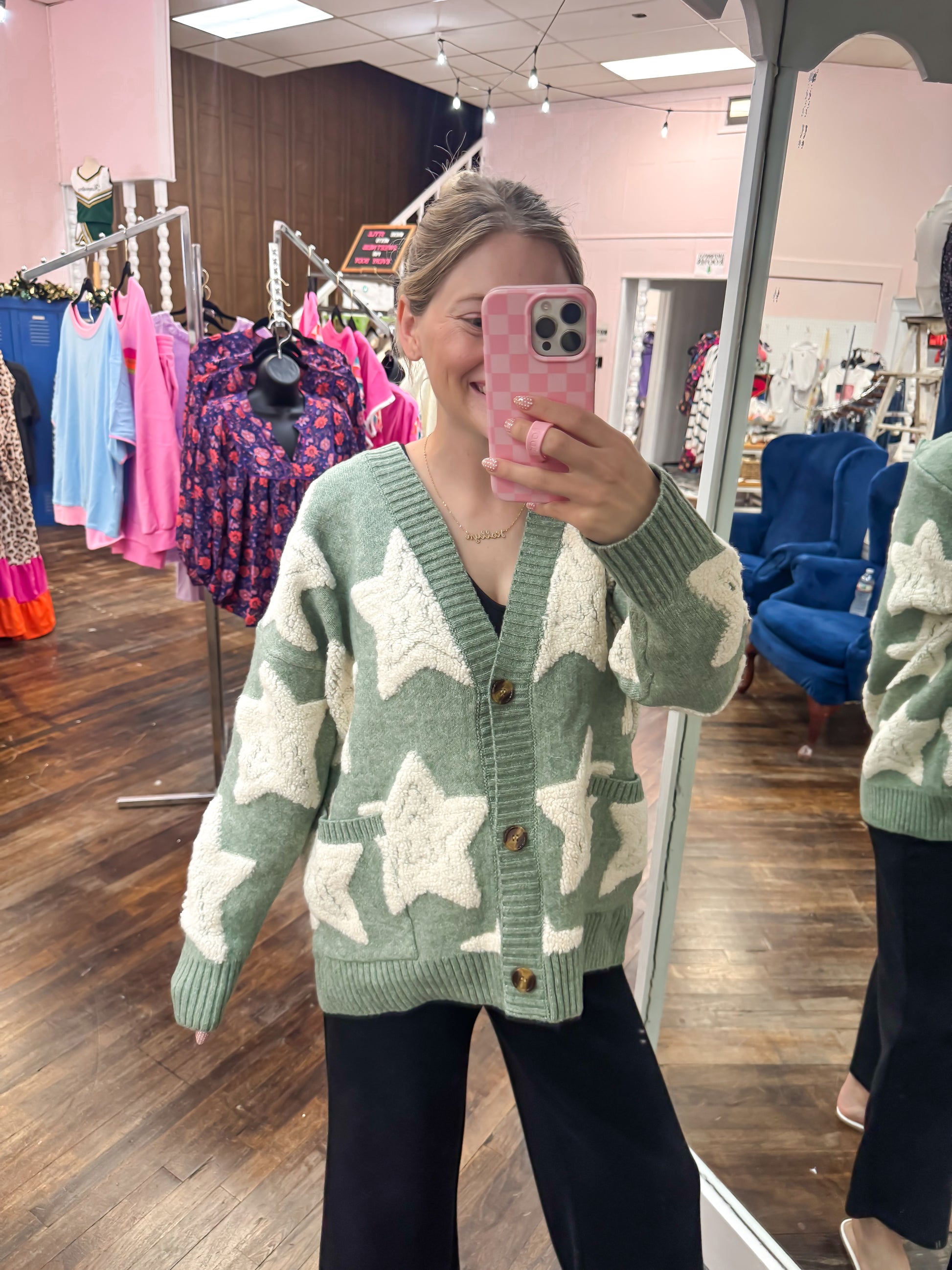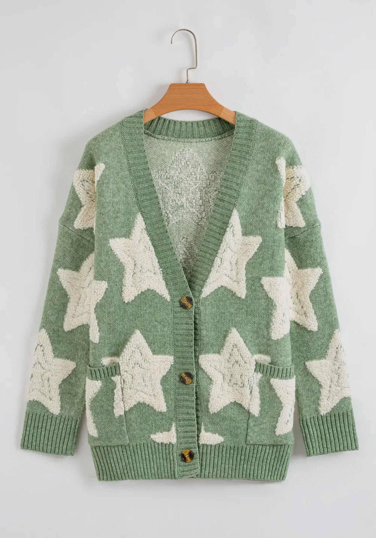 Green Star Sherpa Sweater Cardigan