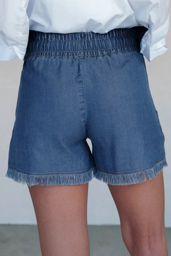 Raw Hem Drawstring Denim Shorts